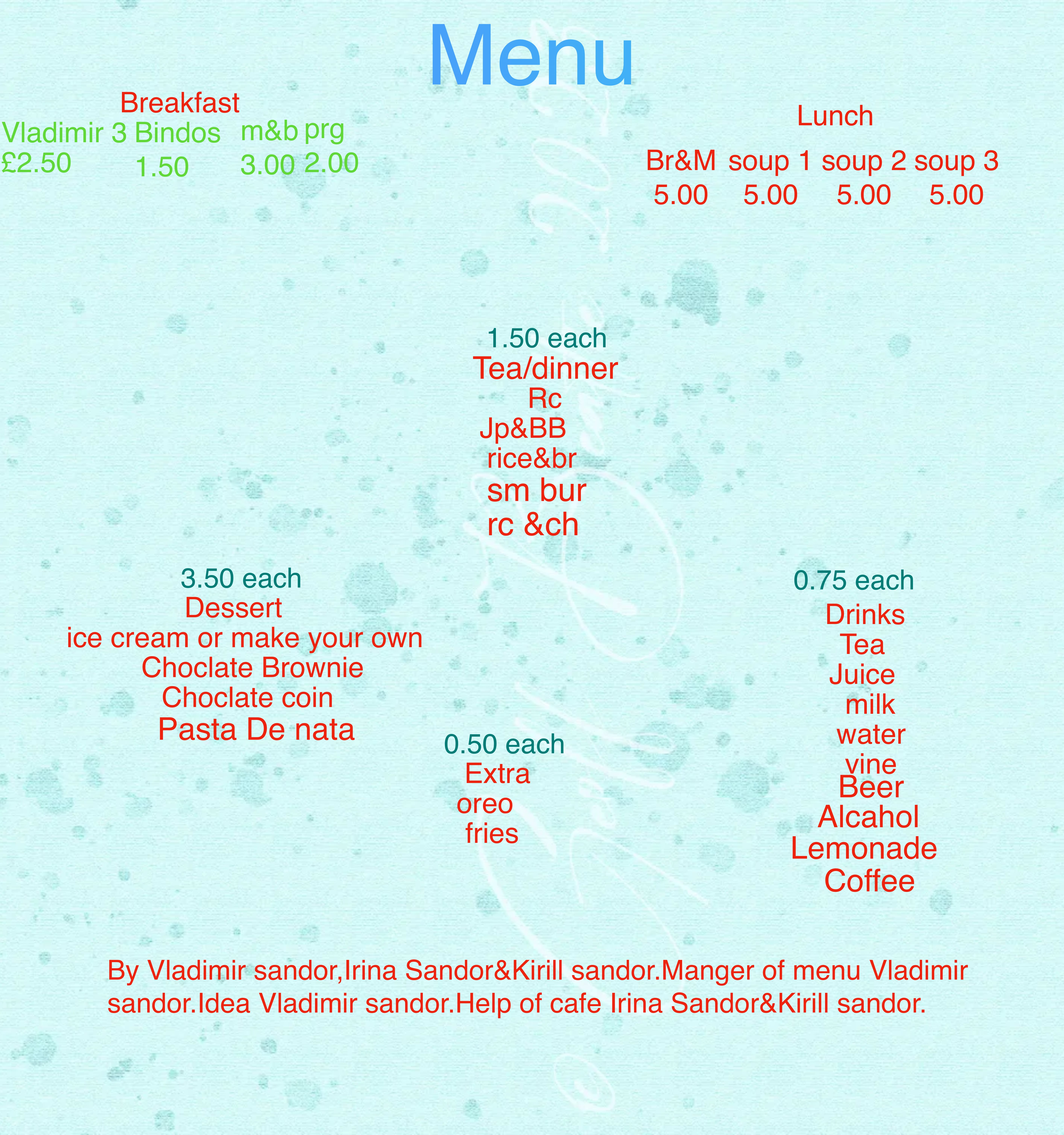 Hello,I'm Vova.Today were going to learn about my cafe!